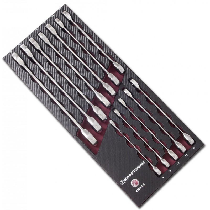 Module Mousse Kraftwerk Eva 3 - série de clés combinées à double cliquet: un sur la machoire et l'autre pour l'oeuil. Clés de très haute qualité, finition polie mirroir.
